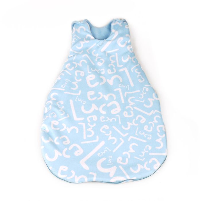 We make the beautiful personalised baby grow bags, baby bedding, and snugly sleeping bags for babies especially. They are also useful as travel sleeping bags in a car seat. Snugly baby grow-bag with names printed on soft cuddle fleece makes for sleeping bags for babies. Sleeping bags for babies are ideal as a gift set with baby blanket, baby changing mat, and if you want a full nappy and changing bag set order with our small holdall. It's a classic selection. We custom-make all our baby gifts to order in our London facility, including these wonderful personalised baby grow bags.