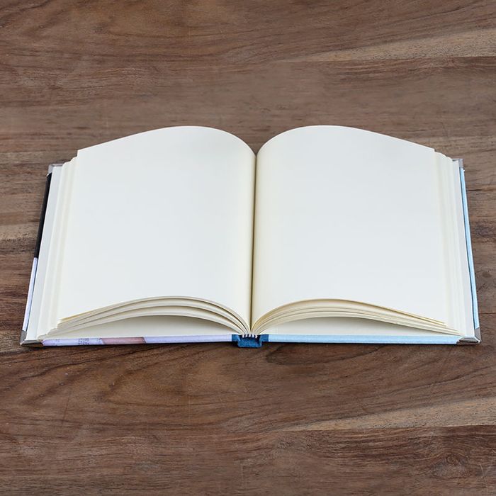 Your personalised photo journal features a hardback cover made from Monroe satin fabric. This elegant fabric gives your custom printed journal a classy and high-end finish, that sets it apart from other journals. Your designs and photos are printed into the fibres of the fabric, creating a gorgeous print that won't peel. Your photos are printed edge to edge, so using a single photo on the front and back will look very striking. Because satin is a woven fabric, you can see the weave texture through the print, which adds to the overall charm. Once you have decided which photos to print onto your custom journal, you can select from four spine colours; red, black, green or black. The personalised photo journals are filled with 80 pages on unlined ivory paper, which is perfect for writing and drawing on. We complete each book with smart metal caps fitted securely onto the corners. Make your journal personal to you by uploading your favourite photos and maybe even a line of text.
