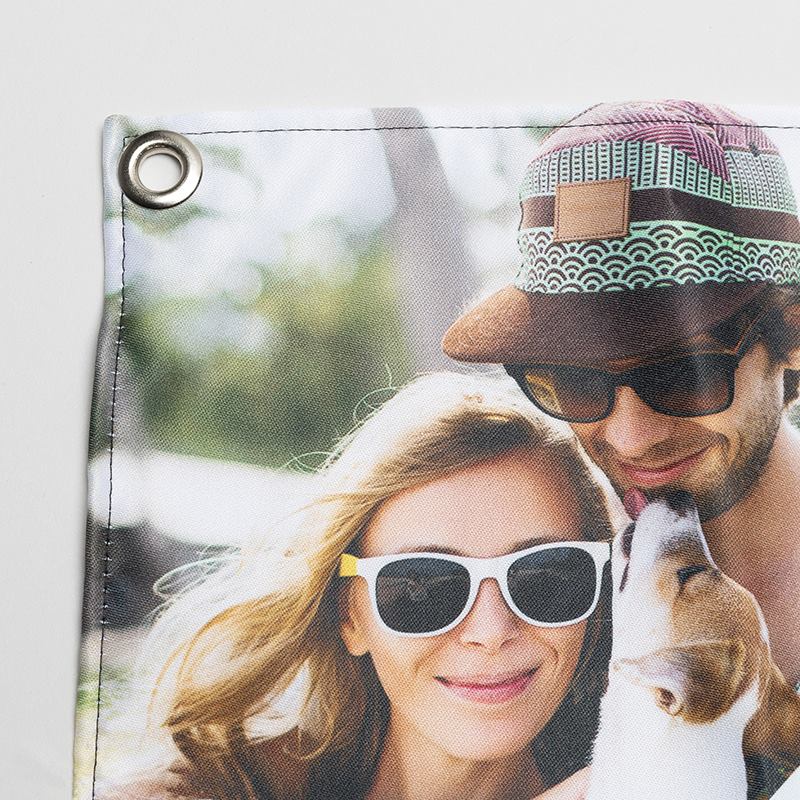 All prices include full-colour images, text or graphics on finished personalised photo banners. Design online and we will make your personalised fabric banners fast. All prices include hemming or over-locking (a sewn finish) and eyelets at approx 42 cm to 64 cm intervals.