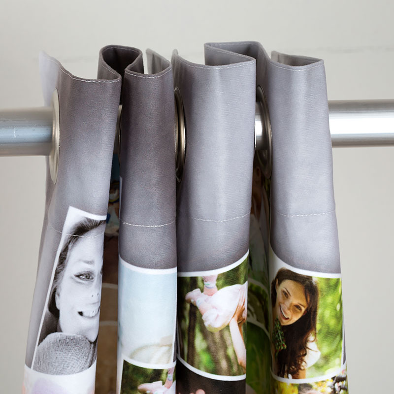 You can choose your own background colour for your custom blackout curtains, rather than using the standard white, and our design tool comes with some pre-set collage templates. Rather than fill your curtains edge to edge with photos, create a beautiful picture collage on a coloured background that matches the decor of your room. This is a great idea if you'd like bespoke curtains in multiple rooms.