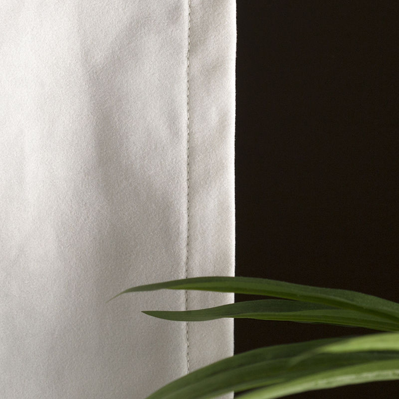We also offer four different lining options. The curtains are made from Suede Vision textile, to which you can add no lining, one layer of our high-quality ivory lining, one layer of our blackout lining which is dense weave and cream, or interlined. Interlined has three layers, the Suede Vision printed curtain, a quality wadding to line the middle and then the ivory lining at the back. Please note if you choose a lining that isn't the blackout lining, your curtains will no longer have the same blackout properties.