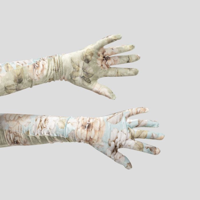 Each pair of custom long gloves is handmade to order here in our North West London facility. We print your designs directly onto Crushed Velour fabric using eco-friendly inks and a deep infusion printing technique, which results in a long-lasting, fade-resistant colour. This means that you can dance all night and machine wash your custom evening gloves without worrying about the print fading. Once printed, the fabric is then cut to size and shape, and stitched together by our expert seamstresses.