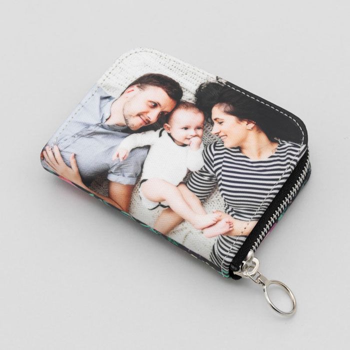 Well, not the gap so much as the fold. When designing your custom personalised ladies wallets, bear in mind that you design the front and the back separately. Your personalised women's wallet with zip, however, is made from one complete piece of leather or oilcloth. This means that there will be an image 'seam' at the bottom where the two designs join. This is barely noticeable when your personalised women's wallet is in use, and you can minimise this effect by using two photographs with similar colour palettes.