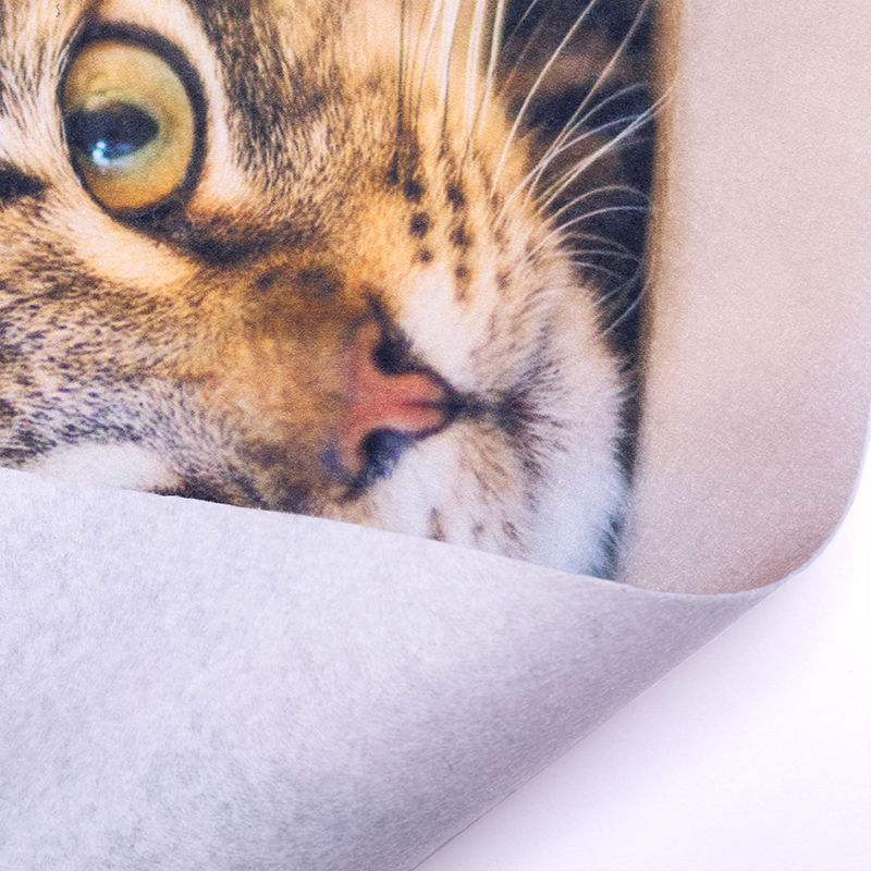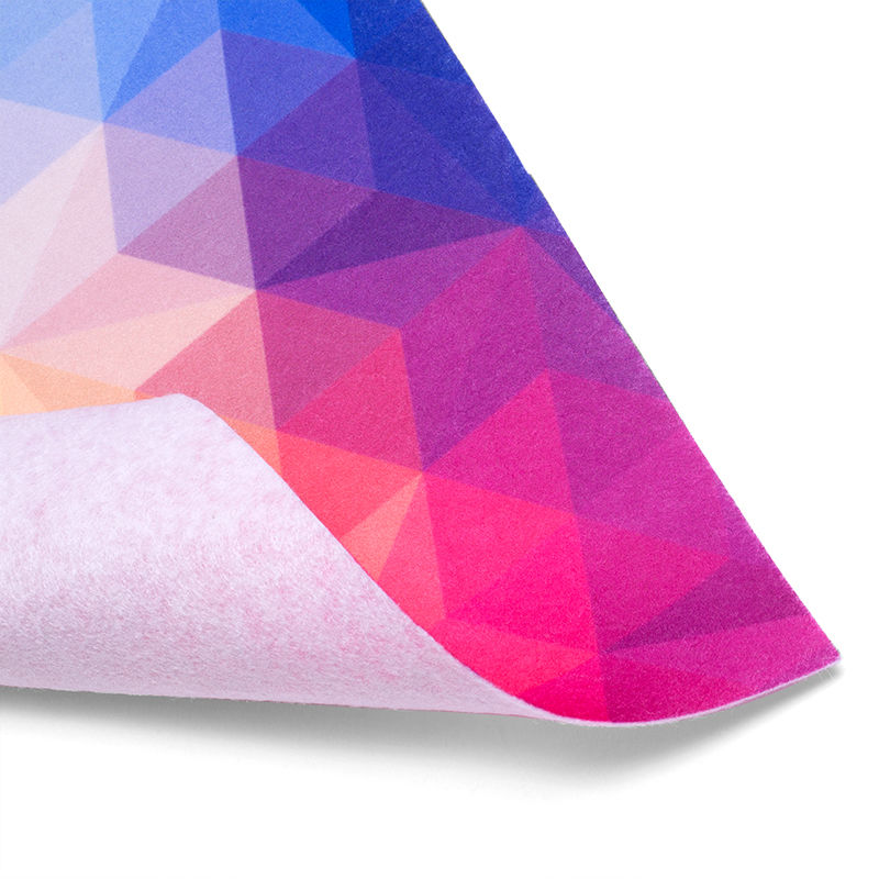 We print your photos and designs onto the felt using state-of-the-art digital printing techniques. This modern digital print technology infuses the eco-friendly inks deep into the fibres of the material. This produces a long-lasting print that has rich colours and wonderful details. The print won't scratch off, peel away or rub off, and it won't peel over time either - giving you fantastic, great quality, high-definition, custom felt printing.