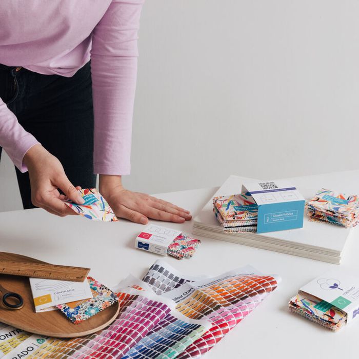 We print a standard design, onto the range of fabrics that we offer. We use the same digital swatch book printing method we use for the fabrics that you order, and we use the same design on each fabric so that you can see the difference between the print detailing as colour reproduction as well as experience the handle of each fabric for yourself. We also print the ID number and the name of the fabric onto each piece, which you can use when you are trying to locate that fabric once you have decided which one you would like to use.