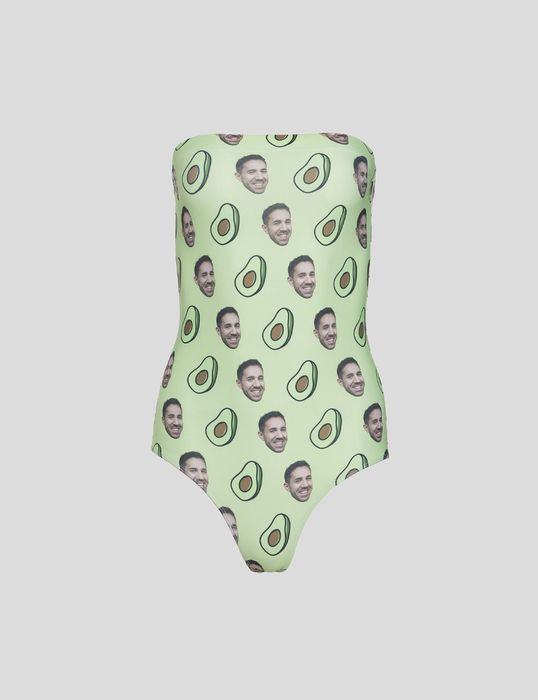 Bare more, but without bearing all, with a face bathing suit designed by you.