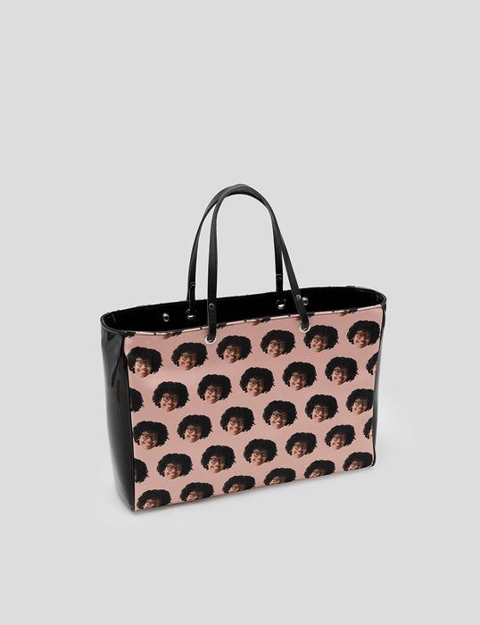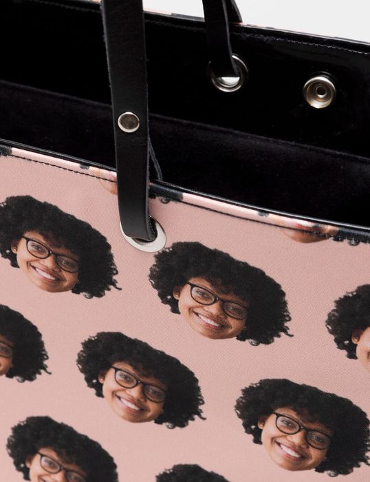 Your face handbag has been designed with style, luxury and usability in mind. That's why so many different materials go into the construction, each is carefully selected based on its properties and the intended use. The front and rear panels of the handbag with face are made from a Monroe Satin, the perfect surface to print your pan onto. The trim of the bag is made from either 100% real Nappa leather, or a patent vinyl depending on your choice, which is available in either ivory beige, pale blue, soft pink or black. The handles, a strong leather in either a natural colour or in black, and the inside of your face handbag is lined with soft and luxurious faux suede. Fancy, right?