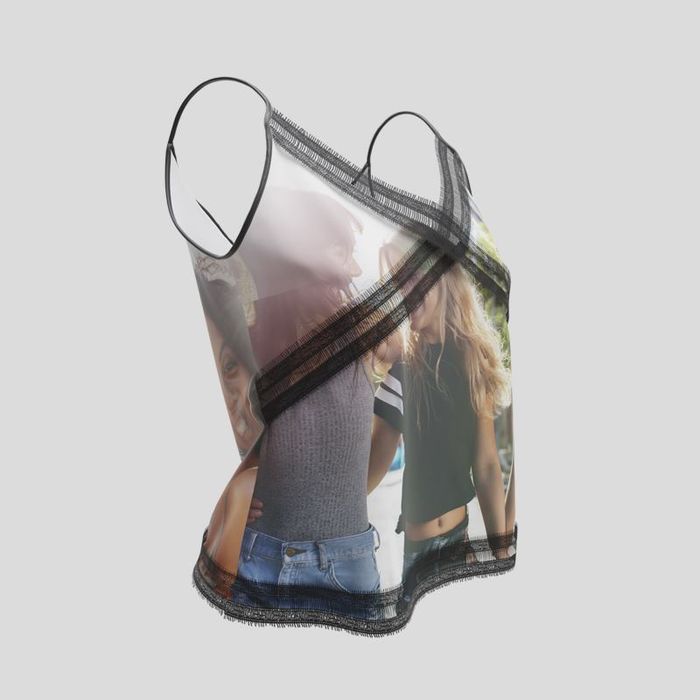 The lace trim cami is delicate and feminine in its appearance. We love using this to your advantage and complimenting the style and cut with equally feminine photos. Create a montage using our online tool and you can use the pre-set heart montage template. This will give you a great finished look.