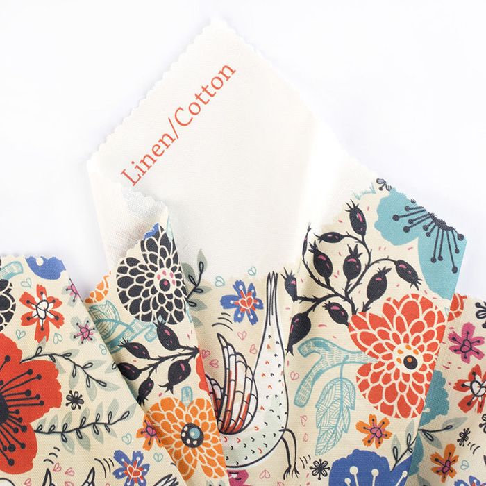This bonds your design to the linen fabric in full glorious colour. You can choose how you would like your photo printed on linen finished. You can have it hemmed by one of our expert seamstresses, or you can have it sent straight from the printer or with you print cut on the line so that you only receive printed linen fabric, and no white edges. Due to the nature of Cotton Linen, and our processing methods, there can be occasional small white dots where the unprinted base material has been revealed. This is normal, but will not affect the strong colours and detail of your print. Your custom printed linen fabric will be bright and bold.