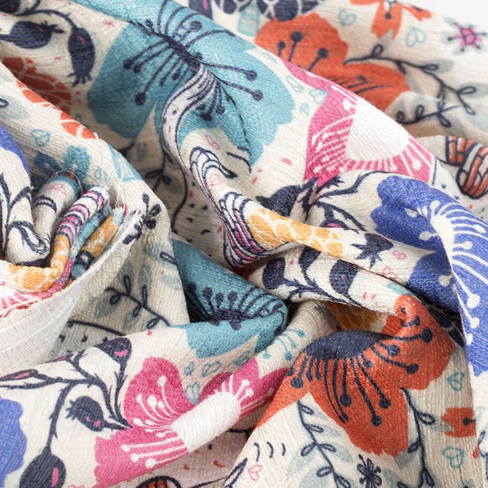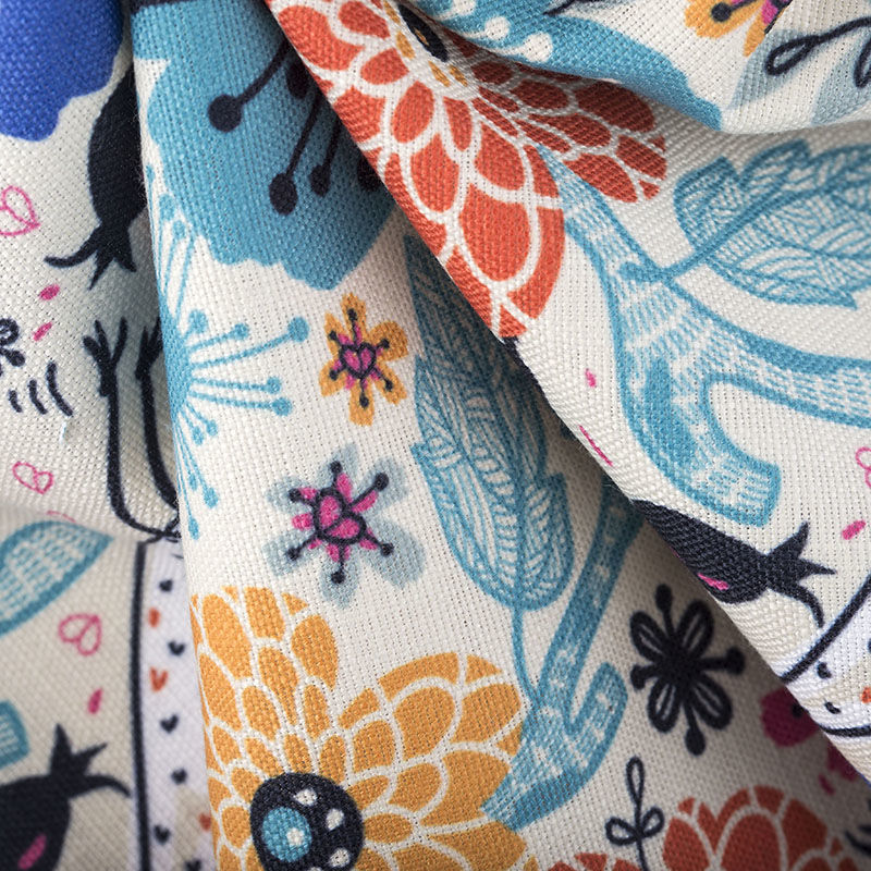 Although very rare, there could be a slight colour difference from one print run to another. This is a normal part of the printing process, however we are always working to improve our colour profiles. It is unlikely that the difference in print runs will be hugely different (for example, it's unlikely your orange is suddenly going to be red). The likelihood of colour variations can be intensified fabric to fabric due to materials having different grains and textures; natural fabrics typically have more muted colour tones, while poly alternatives have a bolder hue. This is because the construction of the material is different, and the printing method has to be altered slightly for more delicate, natural textiles.