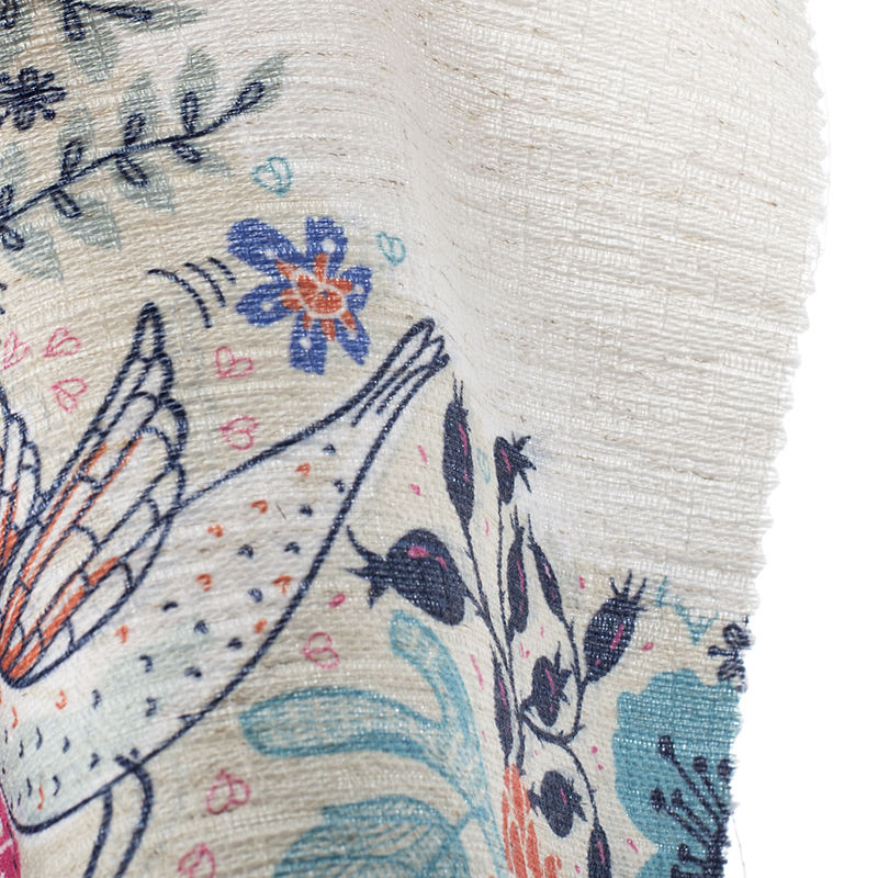 This ensures a full colour, long-lasting print of your custom design, bonded with the fabric. You can either have your linen upholstery fabric send to you as it comes, straight from the printer, or have it cut on the line with all of the white edges removed. If you would prefer you can have your linen fabric hemmed with an overlocked hem, in a choice of black or white thread.