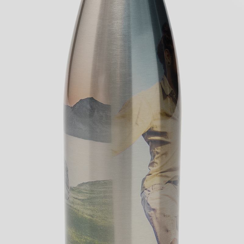 The digital process which we use to print your personalised insulated water bottle does not use white ink. This means that any white areas of your photo will remain the stylish silver of the high-quality, BPA free, stainless steel for added authenticity and charm.
