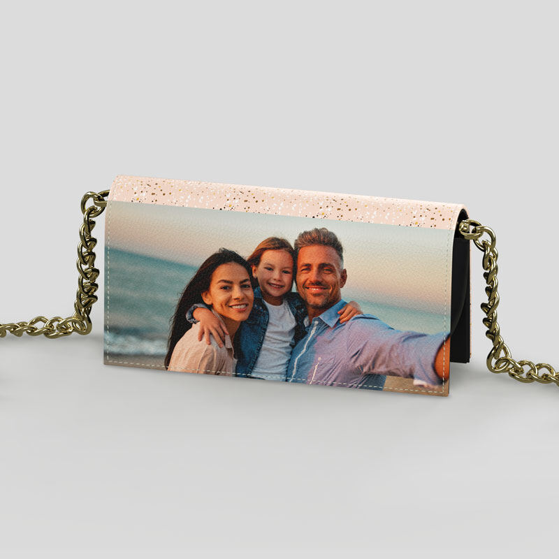 You can upload photos, images and text to make a truly unique gift. When designing your personalised evening bags you have the option of a single image or split images for the exterior panel.