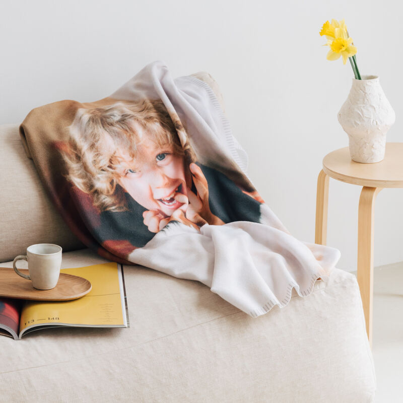 Get snug on the sofa with your personalised fleece blanket and enjoy the comforting hug as you wrap it around your shoulders.