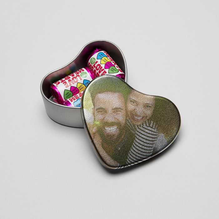 A perfect Valentine gift for someone you love. A me-to-you heart-shaped tin with a photo printed on the surface of the tin giving it an everlasting feel. Packed with love the printed sweet tins come with Love Hearts sweets.