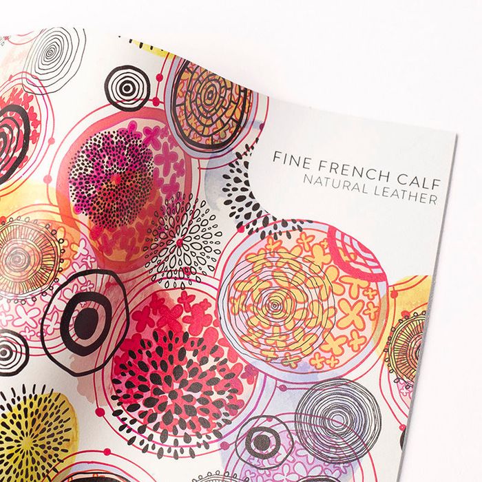 Always test an offcut or sample prior to working the leather with tools, adhesives or heat. To ensure the leather print on your product is as durable as possible, we’ve worked hard refining our printing process and craftsmanship. Repeated turning or working may affect the digital print, always test your processes on a sample first. As leather is a natural material you may notice small differences in surface and texture, as well as wrinkles, which is common to products made from natural leather. All leathers age naturally according to the usage, and this can cause the print to wrinkle or fade slightly over time. It is possible the base colour may show through the leather as it ages with wear. When not in use we recommend storing your product in a protective dust bag or box to keep your product looking its best. Avoid prolonged exposure to extreme heat, sunlight, water, and chemical cleaners to maintain a bright and long-lasting print. Avoid contact with light coloured fabrics or upholstery as the colour may transfer. Whilst a light rain shower is unlikely to harm, we recommend protecting from rain. Should your product get wet, allow to dry naturally away from direct heat. To clean surface wipe only with a damp lint free cotton cloth.