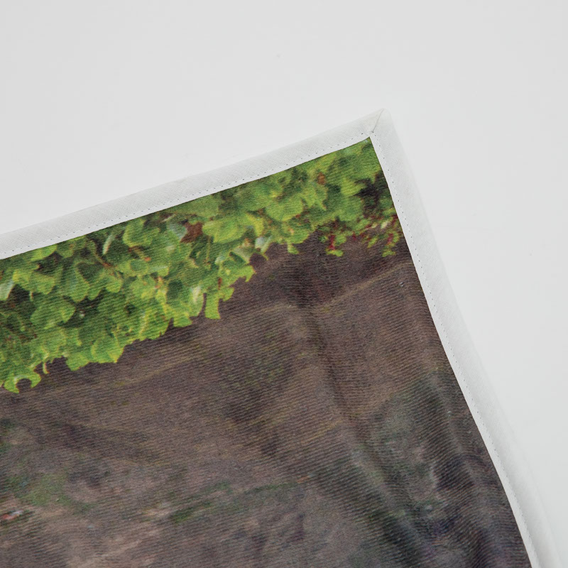 The print on the microfibre face of the towel fabric is highly detailed. Detailed patterns, single photos, photo collages and even large blocks in just one colour will all produce excellent print results.