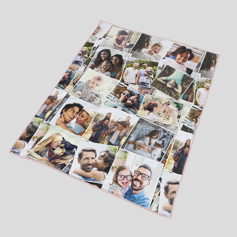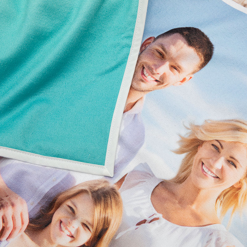 Your Photo Collage Beach Towel is super thick and has a luxurious feel. Create your own photo collage beach towel online using your precious photos. To begin, click "Start Design", and from there you are able to upload your photo collage. Once your design is complete, we print it directly and deeply into the towel's fibres. Thanks to our sophisticated printing methods, your image will last years. Enjoy your new photo montage beach towel on holiday or at a beach closer to home! They are great fun and also make amazing personalised presents. Perfect as a gym, travel, or camping towel too, all handmade by us in London.
