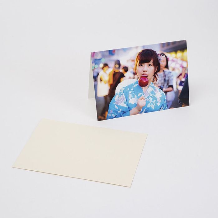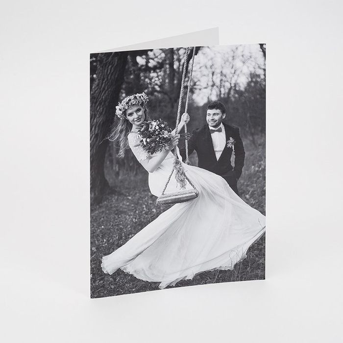 Your photo upload cards design is printed onto 350 gsm card using modern digital printing methods. Our technicians use deep infusion techniques to bond the inks to the fibres of the card, resulting in a full-colour long-lasting print that will not peel or crack. With your message on the inner right page, our craftsmen cut your card to size and then supply it to you in an envelope.