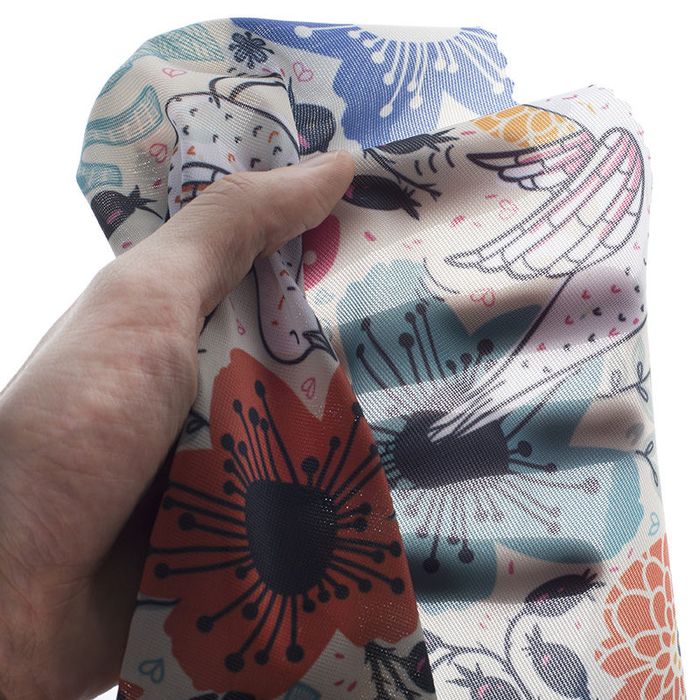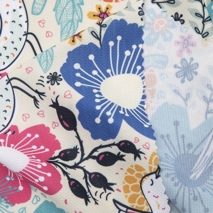 All of our fabrics are printed digitally, but we do use different methods for this including dye sublimation and pigment printing. All of our printing methods bond your custom design to your chosen fabric, in full glorious colour, and printing on mesh fabric is no different. Pigment printing is a very localised printing method, which applies the coloured dyes directly to a specific part of the fabric, and builds up the design; this works especially well on natural fabrics. Dye sublimation is a two-step process, which involves printing your personalised design onto a transfer sheet, and then using heat to bond the design to your printable mesh fabric.