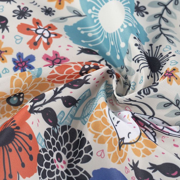 Although very rare, there could be a slight colour difference from one print run to another. This is a normal part of the printing process, however we are always working to improve our colour profiles. It is unlikely that the difference in print runs will be hugely different (for example, it's unlikely your orange is suddenly going to be red). The likelihood of colour variations can be intensified fabric to fabric due to materials having different grains and textures; natural fabrics typically have more muted colour tones, while poly alternatives have a bolder hue. This is because the construction of the material is different, and the printing method has to be altered slightly for more delicate, natural textiles.