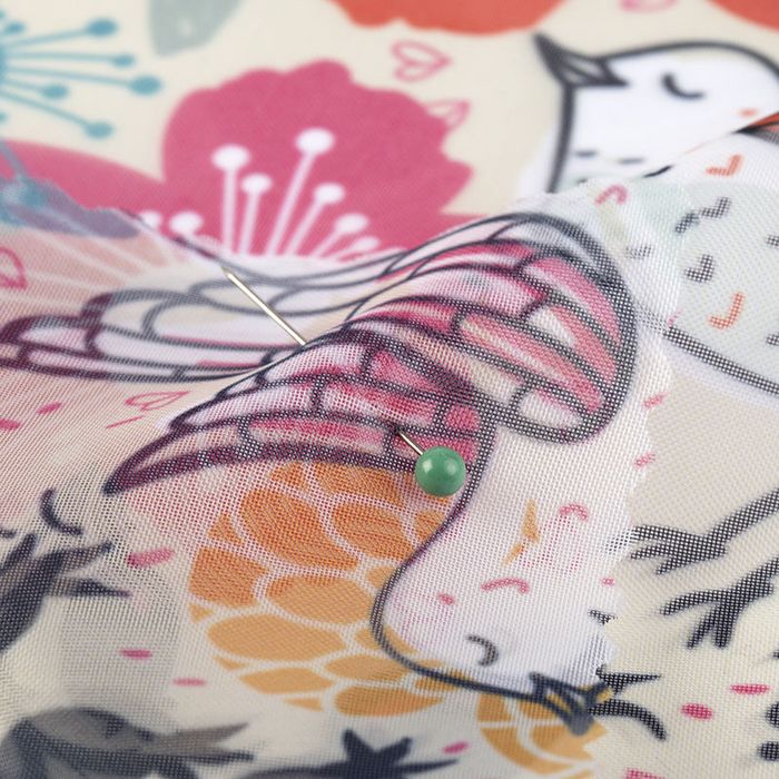 All your custom made printed voile fabric orders are printed digitally. We use different methods for this based on the type of textile that is being used. These methods include pigment printing, which prints onto a localised part of the fabric with coloured dyes, building up your personalised design. Another method we use is dye sublimation. This is a two-step process in which we first print your design onto a transfer paper, and that is then bonded using heat to the fabric itself. Both of these methods create a lasting, full-colour print when printing on voile.