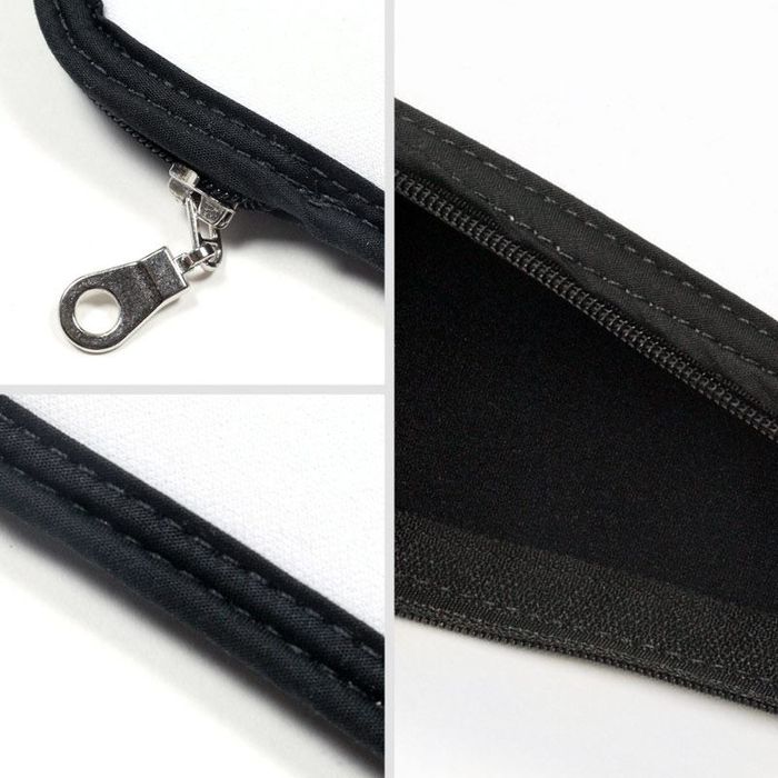 Your personalised MacBook case is expertly handmade to order in London, UK, by our team of textile specialists. We print onto two separate layers of neoprene, which means the front and back can have a completely different image or design. The material is cut to size and hand sewn together. To cover the hemming, we stitch a decorative binding trim over the top, in either black, green, stone or maroon. The zipper runs just passed the curved corners, so you can easily remove your laptop.