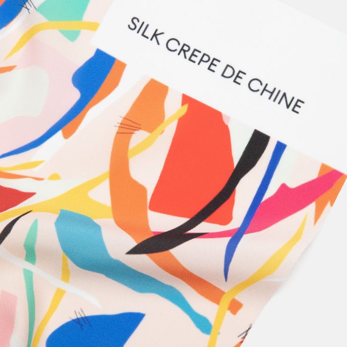 Your silk printing options include classic and new reactive printing technology for many of our silk variants. Classic printing will provide your silk with a cool and mellow surface print, while reactive printing will infuse the fabric with ink, creating lasting and bright design with a higher wash allowance.