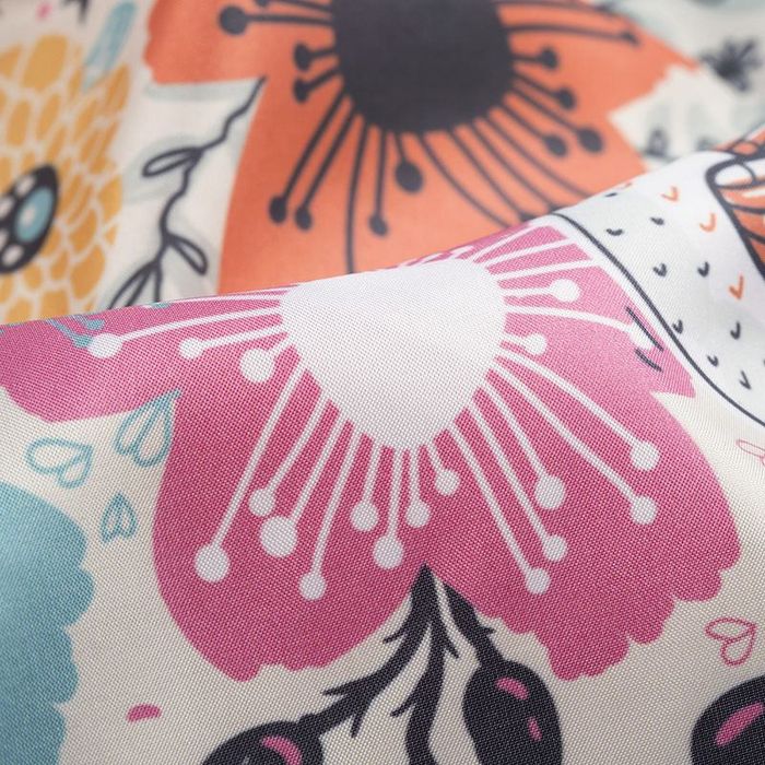 Although very rare, there could be a slight colour difference from one print run to another. This is a normal part of the printing process, however we are always working to improve our colour profiles. It is unlikely that the difference in print runs will be hugely different (for example, it's unlikely your orange is suddenly going to be red). The likelihood of colour variations can be intensified fabric to fabric due to materials having different grains and textures; natural fabrics typically have more muted colour tones, while poly alternatives have a bolder hue. This is because the construction of the material is different, and the printing method has to be altered slightly for more delicate, natural textiles.
