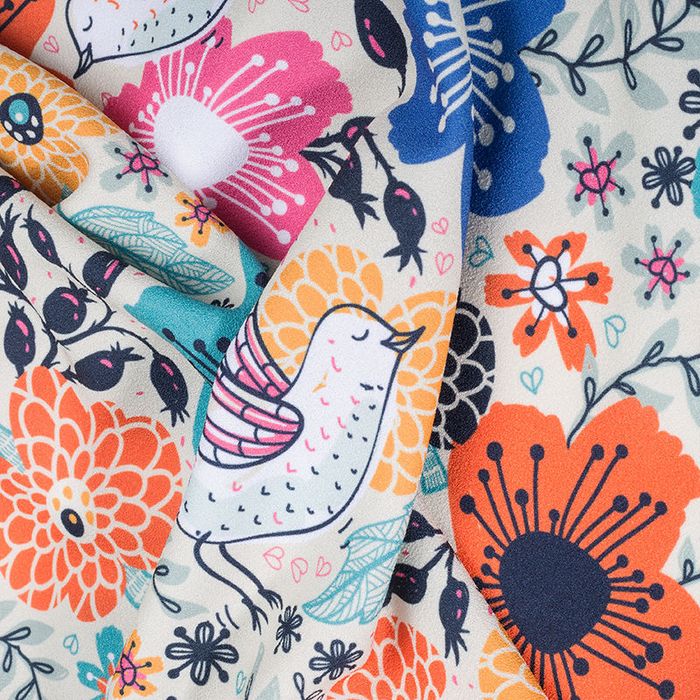 Although very rare, there could be a slight colour difference from one print run to another. This is a normal part of the printing process, however we are always working to improve our colour profiles. It is unlikely that the difference in print runs will be hugely different (for example, it's unlikely your orange is suddenly going to be red). The likelihood of colour variations can be intensified fabric to fabric due to materials having different grains and textures; natural fabrics typically have more muted colour tones, while poly alternatives have a bolder hue. This is because the construction of the material is different, and the printing method has to be altered slightly for more delicate, natural textiles.