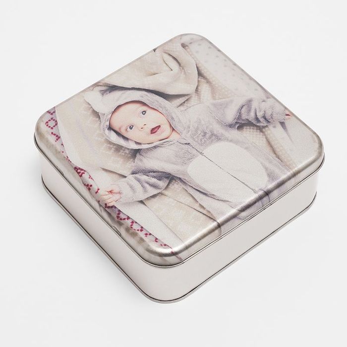 Made and printed to order in our London studios by expert metal workers, your personalised metal tins are an exquisite gift that has bags of personality. The metal is manufactured and moulded to produce the contemporary curved edges that give your designs that stunning 3D effect. The removable slip lid is incredibly secure, ensuring that the contents are contained without risk of falling out. We use a specialist printing process where the inks are impregnated directly onto the surface. The natural, authentic metal grain is visible through your print, but this creates a charming 'etched' effect that makes your custom metal tins more distinguished.